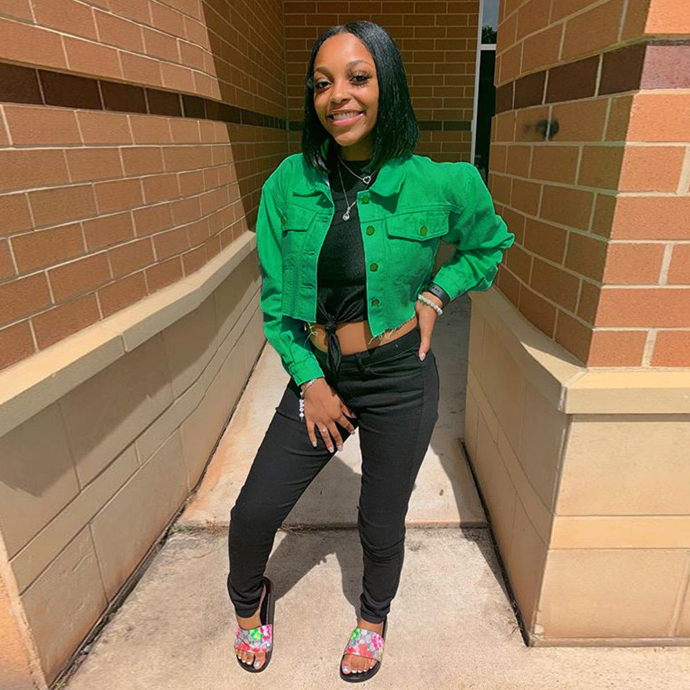 2.Feature:Short jacket, raw design, pockets, buttons, casual.