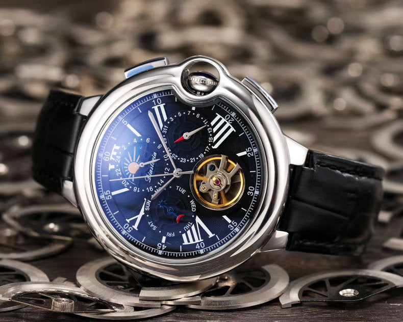 Style: fashion Movement type: mechanical movement-automatic mechanical movement Strap material: leather Dial thickness: 12mm