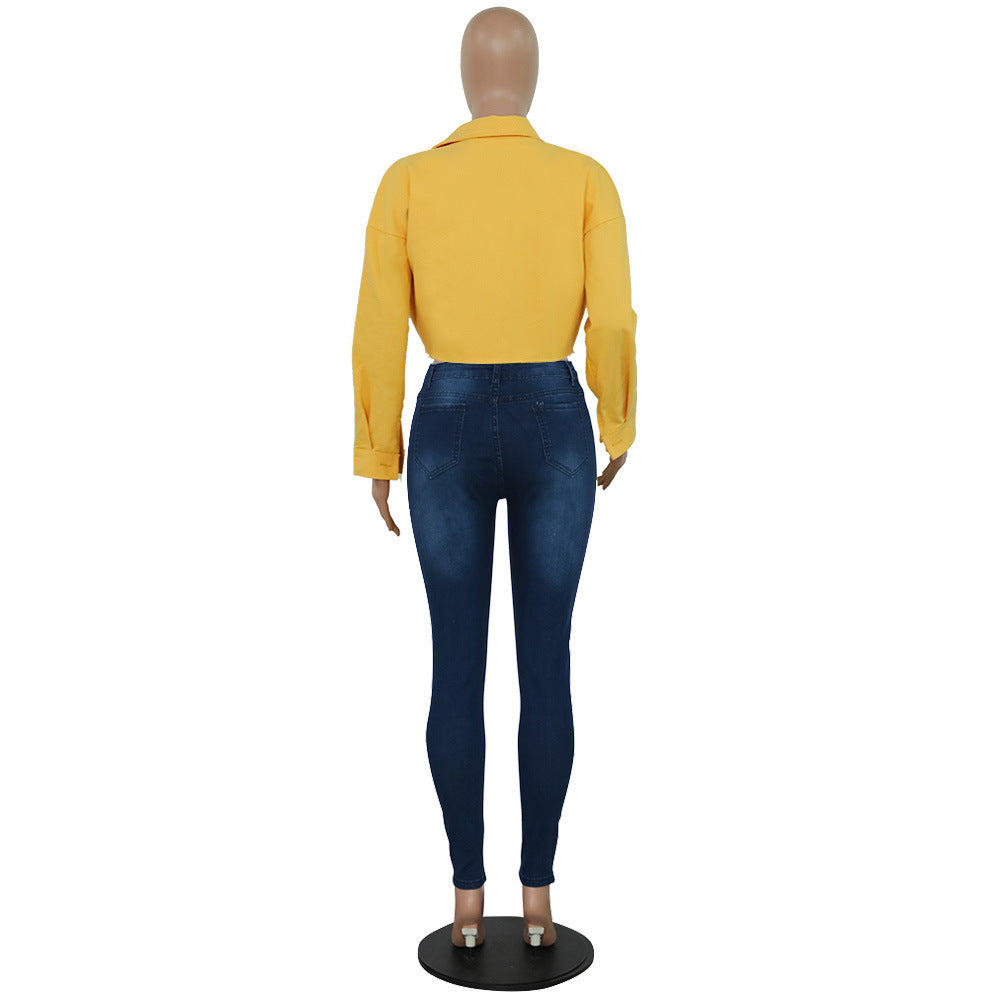 2.Feature:Short jacket, raw design, pockets, buttons, casual.